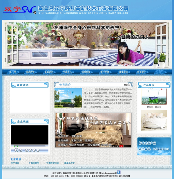 雙寧臥具高新技術(shù)開發(fā)有限公司創(chuàng)于1996年,是依托國家重點(diǎn)大學(xué),利用國家級大學(xué)科技園人才、科技等資源優(yōu)勢,興辦、發(fā)展起來的高科技功能性家居材料生產(chǎn)企業(yè)。公司總部位于人杰地靈的遼寧綏中濱海經(jīng)濟(jì)開發(fā)區(qū),研發(fā)中心位于國家大學(xué)科技園——燕山大學(xué)科技園。