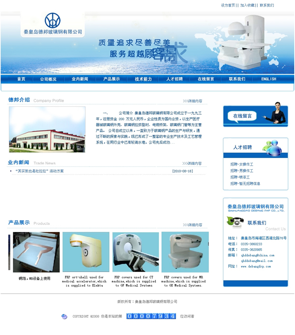 秦皇島德邦玻璃鋼有限公司成立于一九九三年,注冊資金 200 萬元人民幣,企業性質為國內合資,以生產醫療器械玻璃鋼外殼、玻璃鋼拉擠型材、電纜橋架、玻璃鋼門窗等為主營產品。 公司自成立以來,一直致力于玻璃鋼產品的生產與研發,通過不斷的探索與實踐,現已形成了一整套的專業生產技術及工藝管理系統,在同行業中已有較高水準。